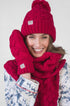 Need to go outside and confront a cold, wintry day? No Problem! Just wrap yourself up in Coffee Shoppe’s textured cable tassel wrap scarf, textured cable Plush Beanie Hat with Pom Pom, textured cable mittens, all matching in Deep Red. Grab your coffee-on-the-go mug and head on out the door.